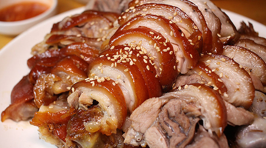 When jokbal has been cooled down, then debone the jokbal. And slice your jokbal to your liking and serve with some hot pepper and sliced garlic on the side with lettuce.