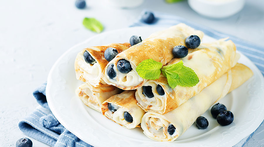 Easy weekend breakfast with blueberries and crepes. Creamy fresh cream will pleasure you even more... Enjoy it with your sweety!