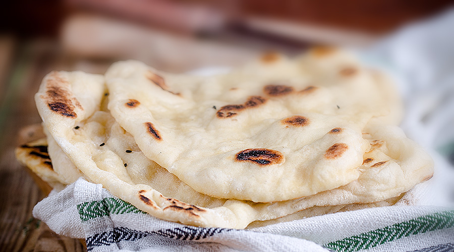 Homemade naan bread from the pan